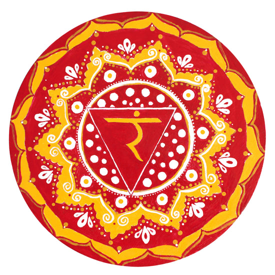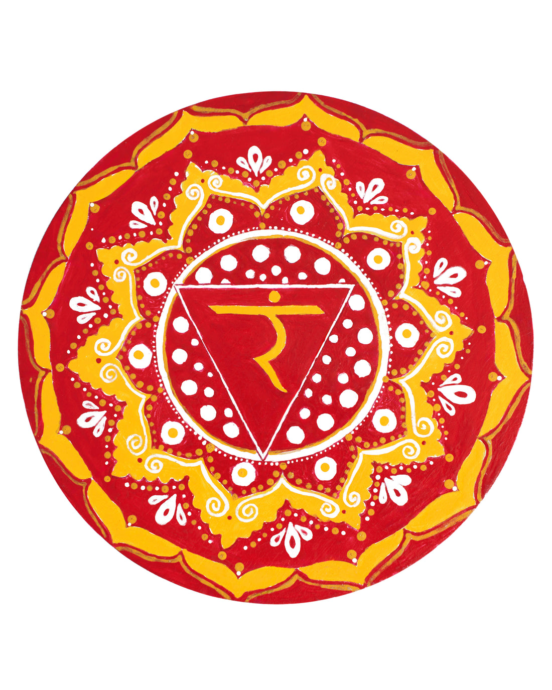 This mandala is the powerhouse of energy as it governs our metabolism and is associated with fire. It is symbolized by a lotus flower with ten petals to represent ten energy channels. It is responsible for one’s willpower and self-esteem.